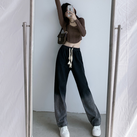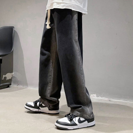 男女款2022年新款四季宽松直筒牛仔裤潮牌渐变拖地牛仔裤