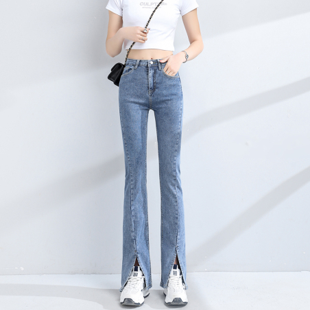 高腰微喇开叉牛仔裤女2022春夏韩版显瘦显高直筒百搭复古