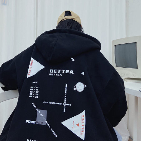2021秋季港风新款套头连帽上衣卫衣潮流长袖印花