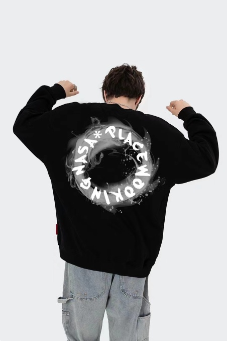 NASA联名潮牌趣味小熊涂鸦长袖宽松情侣装圆领纯棉卫衣