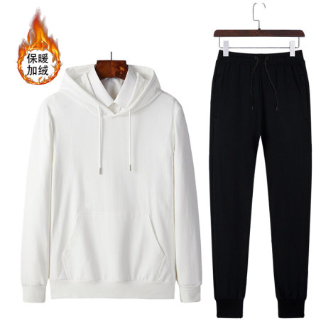 2021新款加绒卫衣秋冬水貂绒l连帽套装纯棉弹力套头衫