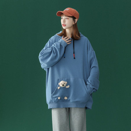 秋季新款情侣套头圆领卫衣休闲时尚纯棉毛圈百搭韩版潮流印花小熊