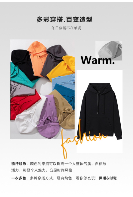 冬季加绒帽衫连帽纯棉超柔棉净版光板