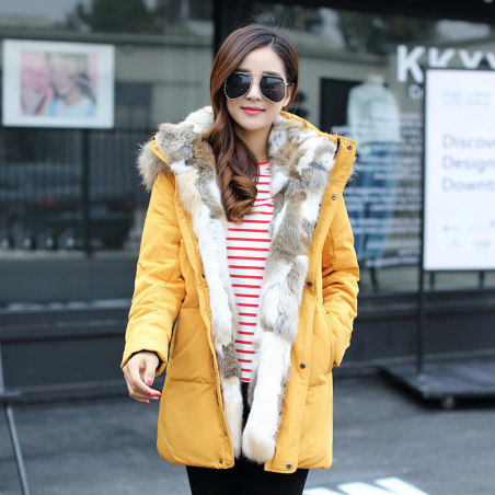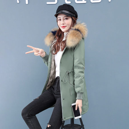 2019冬装新款女装羽绒服青年yrf加厚羽绒服女中长款大毛领