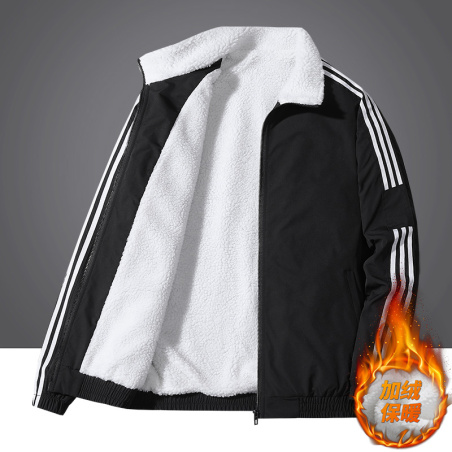 2021年新款男女同款羊羔绒棉衣男大码加绒加厚三条杠夹克外套
