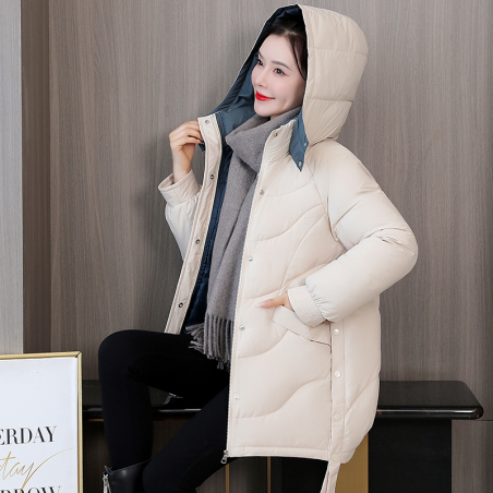 冬季2021新款韩版宽松加厚夹棉中长款连帽长袖棉服外套上衣