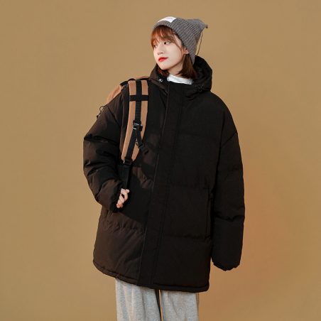 21冬季新款韩版潮流羽绒棉外套女生情侣短款宽松连帽加棉加厚