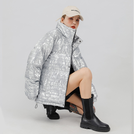 冬季美式潮牌皮棉衣女韩版潮流宽松立领棉服字母反光棉衣男外套