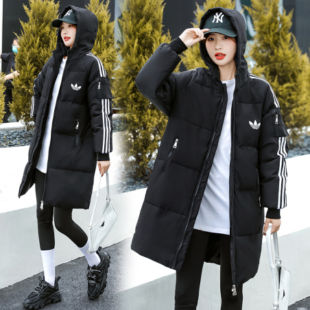2021冬季新款棉衣男中长款棉服情侣款三条杠女生棉衣外套
