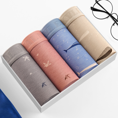 4条装莫代尔男士内裤抗菌裆潮男青年男士四角裤衩柔软透气
