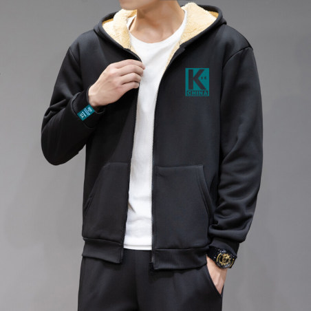 羊羔绒卫衣男士长袖宽松加绒加厚连帽保暖套头秋冬新款