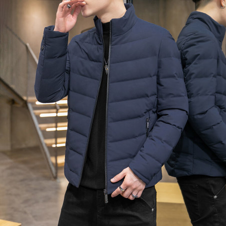 冬季新款立领简约羽绒服男保暖衣服有飞行图挂拍