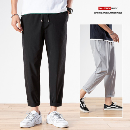 大码冰丝速干休闲裤男韩版潮流夏季新款宽松运动小脚九分裤男潮