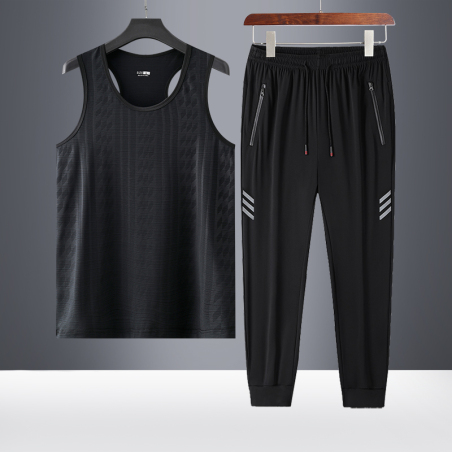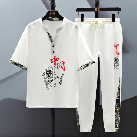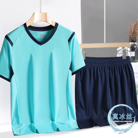 夏季中国风运动套装冰丝短袖套装男短袖T恤速干衣