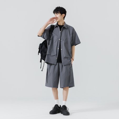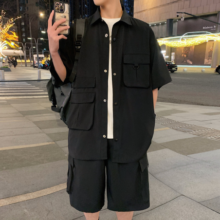 2024夏季新款男士休闲套装青年时尚潮流百搭衬衫套装