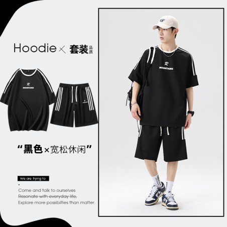 短袖t恤男短袖t恤男士夏季休闲运动套装宽松男套装
