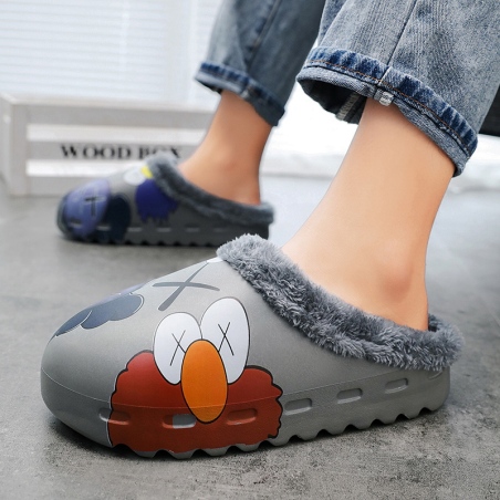 新款两用一体秋季冬季日用 防水男女棉拖鞋加绒保暖厚底月子棉鞋