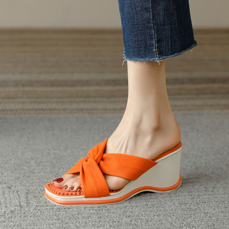 2022年夏季新款女鞋真皮拖鞋高跟鞋