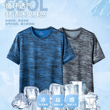 夏季品牌运动t恤冰丝高档短袖圆领男宽松休闲半袖透气大码速干衣