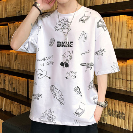 2022新款港风潮牌卡通印花短袖t恤男女卡通动漫学生