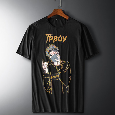 2212-夏季新款冰丝棉速干大码短袖T恤衫高品质短袖潮男t恤