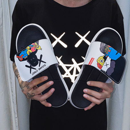 森雅男士踩屎感一字拖字母涂鸦拖鞋