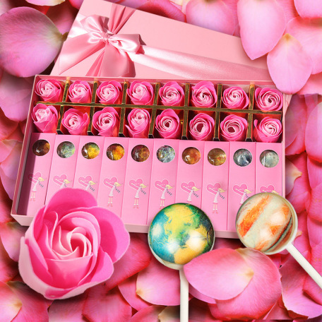 星星图案空球棒棒糖喜糖玫瑰皂花礼盒男女情人节生日礼物