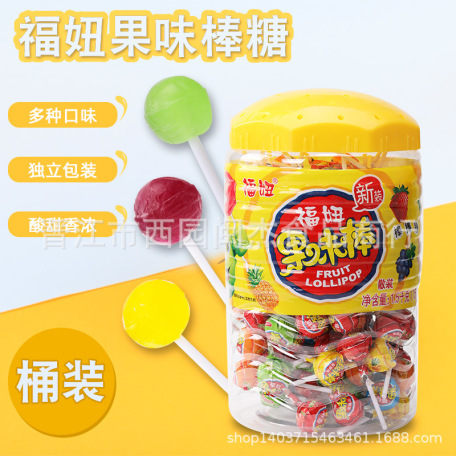 福妞果味棒水果味棒棒糖150支混合味桶装怀旧批发零售糖果零食