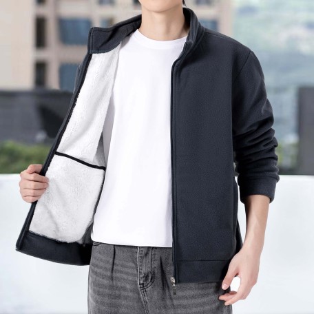 M到5XL户外运动抓绒衣男宽松版休闲秋冬季男士加绒加厚摇粒绒外套