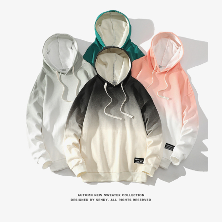 日系白底平铺秋季新款男士卫衣休闲百搭青年长袖T恤渐变色连帽男装卫衣