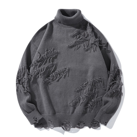 街头港风嘻哈风高领针织衫潮流年轻落肩款大码毛衣内搭打底