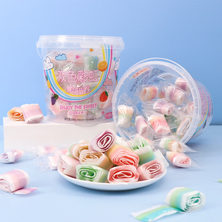 绿草香果汁卷卷糖什锦味果汁橡皮糖儿童休闲创意糖果80后怀旧零食