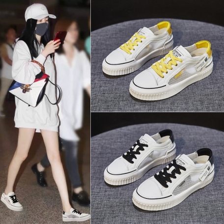 趣步女鞋~夏季网红高帮鞋子女夏季新款镂空网纱面透气板鞋