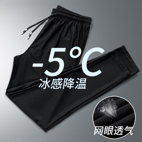 新款冰丝超薄男士休闲裤直筒宽松速干休闲运动裤网眼弹力长裤厂家