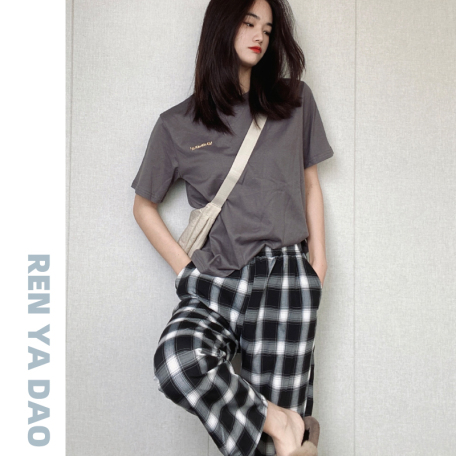 2022新品格子裤子女春夏季薄款厂家批发宽松垂感阔腿复古高腰