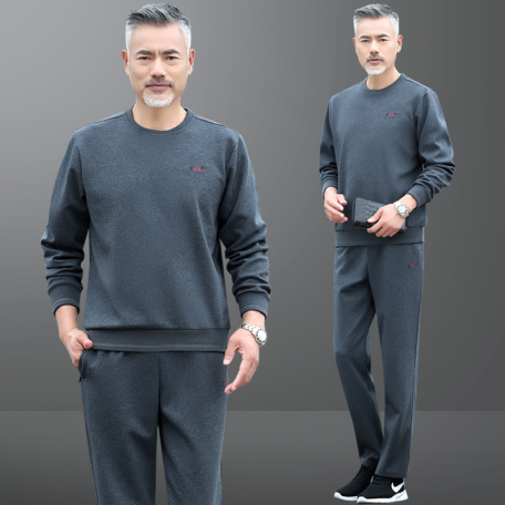 中老年运动套装男春秋休闲爸爸圆领套头卫衣套装男
