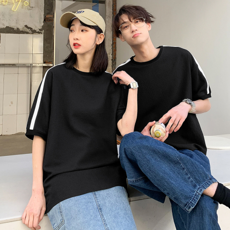 T65-3夏季短袖T恤简约时尚百搭纯色休闲圆领潮牌情侣半袖