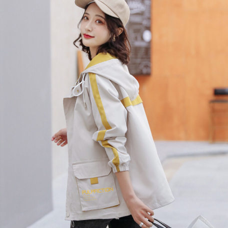 图荣工装外套女春秋季韩版bf风夹克衫连帽休闲撞色风衣女一件代发