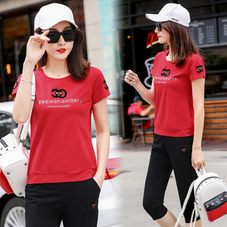 运动套装夏季纯棉女士运动七分裤时尚女装健身卫衣休闲两件套