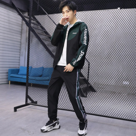 2020年春秋季新款男士休闲运动套装青少年两件套帽衫