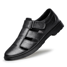 头层皮系带洞洞鞋