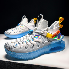 2021年透气鲨鱼刀锋跑步袜子鞋减震TPU底飞织男篮球鞋