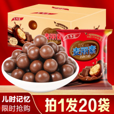 20包不多言麦丽袋装怀旧黑巧克力麦芽脆心球零食朱古力糖果送儿童