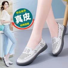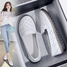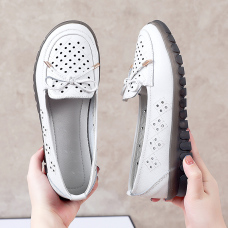 (乳胶鞋垫)真皮小白鞋打眼透气手工乐福鞋35-40