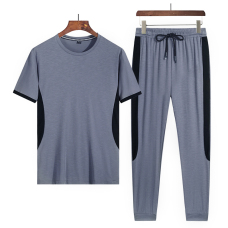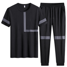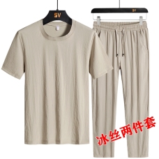 2022夏季大码男士冰丝运动休闲套装男圆领T恤短袖长裤套装
