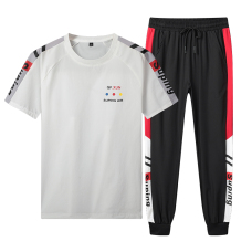 2022夏季大码冰丝运动休闲套装男男士圆领T恤短袖长裤套装