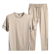 100纯棉休闲运动套装男夏季薄款宽松两件套潮男长裤短袖t恤