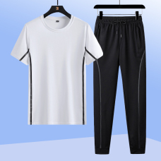2021T恤男士长裤短袖运动冰丝短袖套装冰丝裤冰丝套装两件套