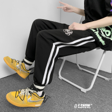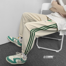2022夏季休闲裤斜纹冰丝休闲裤子三条杠直筒束脚裤校裤