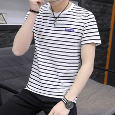 2022夏季新款男士圆领纯棉条纹短袖T恤韩版修身时尚休闲男装